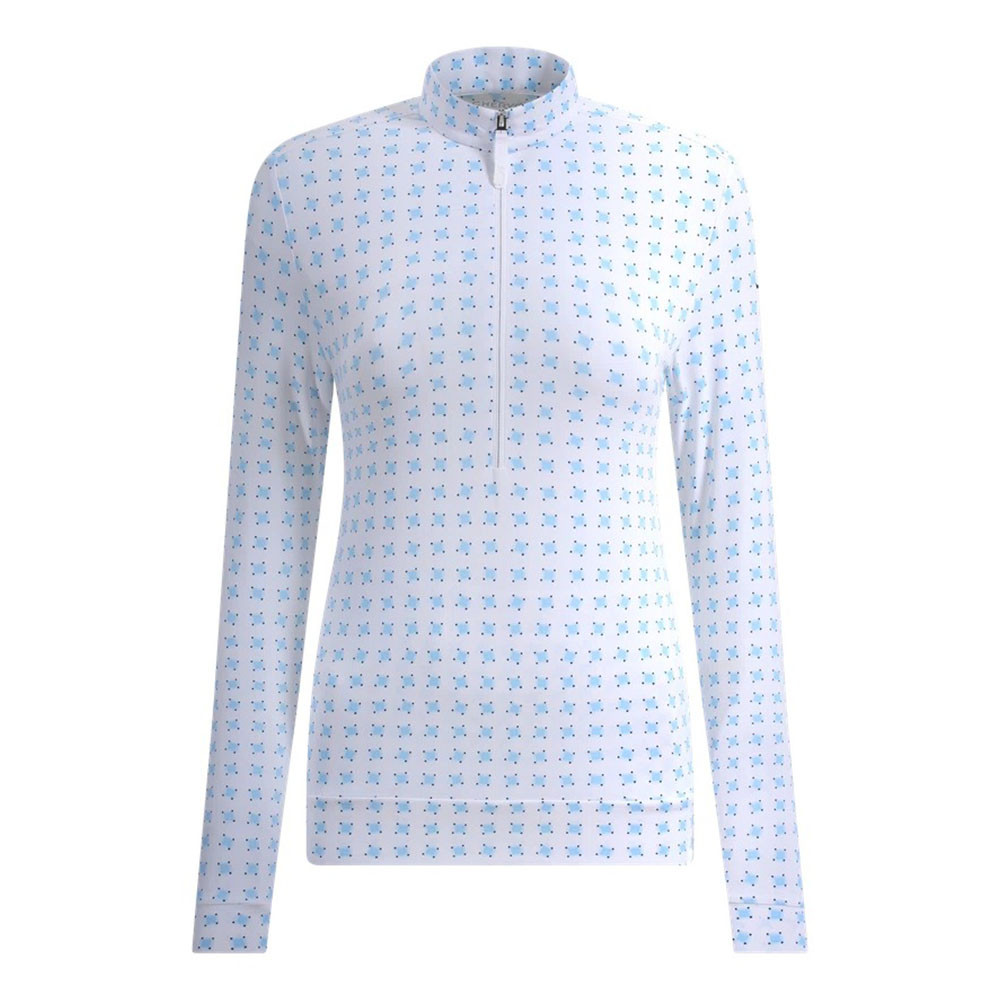 La fonctionnalité est au cœur du design du modèle Trisha. L'ouverture à demi-zip centrale permet de moduler l'aération selon les variations de température ou l'intensité de l'effort. Ce zip fluide apporte une touche de praticité indispensable pour une superposition facile (layering) sur un polo technique. Les finitions précises et la légèreté du jersey en font un vêtement peu encombrant, facile à glisser dans votre sac de golf pour parer à toute brise légère.