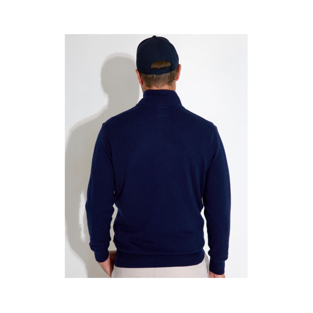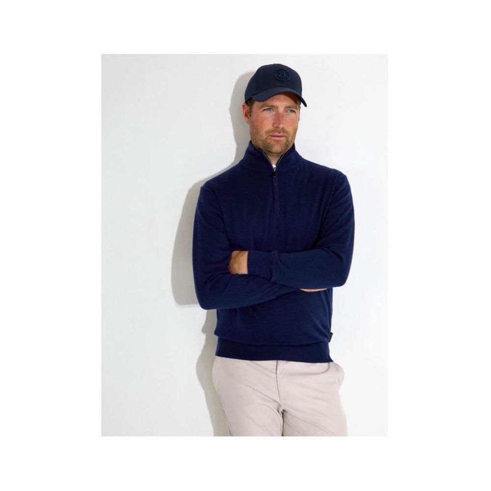 Le pull Liffin Windstopper de la marque Abacus combine chaleur, confort et protection contre le vent. Conçu dans un mélange haut de gamme de laine mérinos, nylon et acrylique, il offre une douceur exceptionnelle tout en garantissant une durabilité optimale. Sa coupe moderne et son col zippé en font un vêtement aussi fonctionnel que raffiné, idéal pour le parcours comme pour les moments de détente.