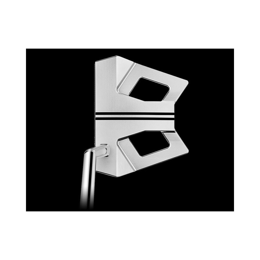 Présentant aux joueurs une autre option de performance, la Phantom 9.5 est similaire en tous points à la Phantom 9, à l'exception de son cou à jet qui favorise l'écoulement des orteils. Le résultat est un maillet multi-matériaux à l'allure rapide, conçu pour un équilibre et un toucher optimaux. L'alignement à l'adresse est guidé par deux lignes de visée parallèles fraisées depuis le bord d'attaque de la face jusqu'à l'arrière pour un repère visuel qui assure une mise en place confiante. La nouvelle aile transparente intègre de l'acier inoxydable 303 plus lourd et fraisé avec précision pour sa structure avec un flasque léger en aluminium 6061 pour répartir stratégiquement le poids pour l'équilibre et un MOI plus élevé tout en conservant la stabilité, la tolérance et le toucher.