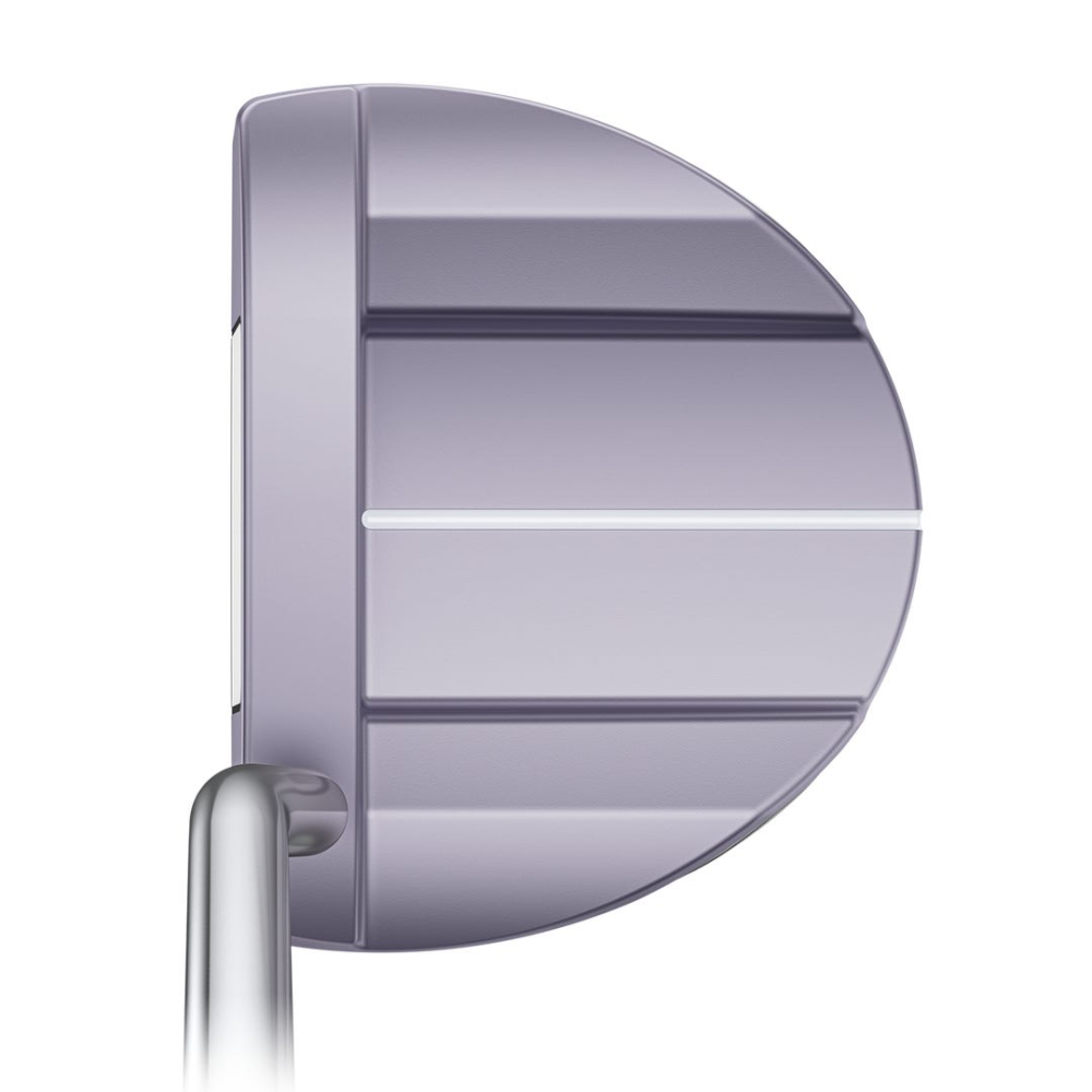 La structure supérieure du putter est composée d'un corps forgé en aluminium anodisé Galactic Lilac, une matière légère qui permet de déplacer la masse là où elle est la plus utile. La partie inférieure est dotée d'une semelle en acier inoxydable moulé avec une finition Pearl Chrome élégante. Cette combinaison permet d'abaisser considérablement le centre de gravité, favorisant une roule de balle immédiate et une réduction drastique de la torsion de la face de club au moment du contact.