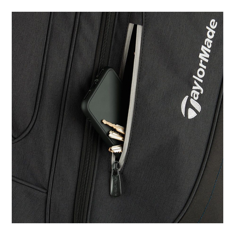 Le sac de golf femme Kalea Premier de Taylormade est un modèle léger, pesant environ 2,5 kg, conçu pour faciliter la gestion de vos clubs grâce à ses 14 compartiments, dont un dédié au putter. Ses multiples poches stratégiquement placées offrent un accès facile à tous vos accessoires : télémètre, tees, balles, vêtements, smartphone, objets de valeur, etc. Une fois installé sur votre chariot de golf, il permet de se déplacer sur l’ensemble du parcours en toute tranquillité. Le Taylormade Kalea Premier Cart est un compagnon de jeu fiable et durable.