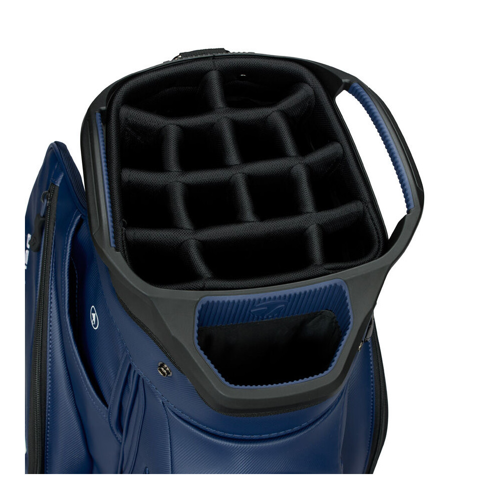 Le dessus à 14 compartiments permet une séparation nette de chaque club. Cette organisation protège efficacement les grips, limite les chocs entre shafts et facilite le choix du club pendant le jeu.