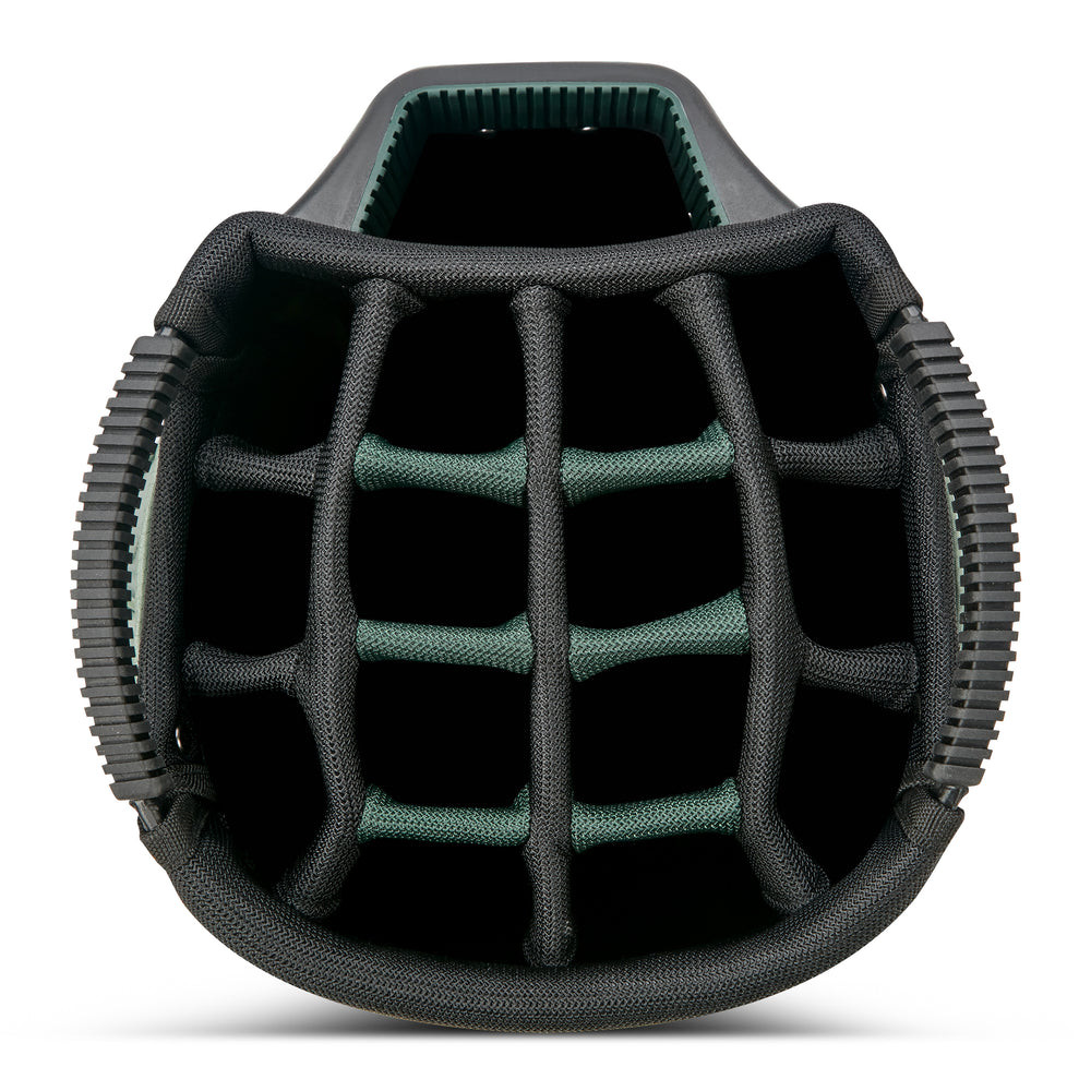 Le sac dispose de 11 poches spacieuses stratégiquement placées pour être accessibles à 360 degrés. Parmi les innovations marquantes, on retrouve deux compartiments latéraux magnétiques permettant un accès ultra-rapide à vos accessoires essentiels. Le haut du sac intègre également un organisateur premium, tandis que les poches latérales inférieures sont divisées pour optimiser le tri de vos balles, tees et gants.