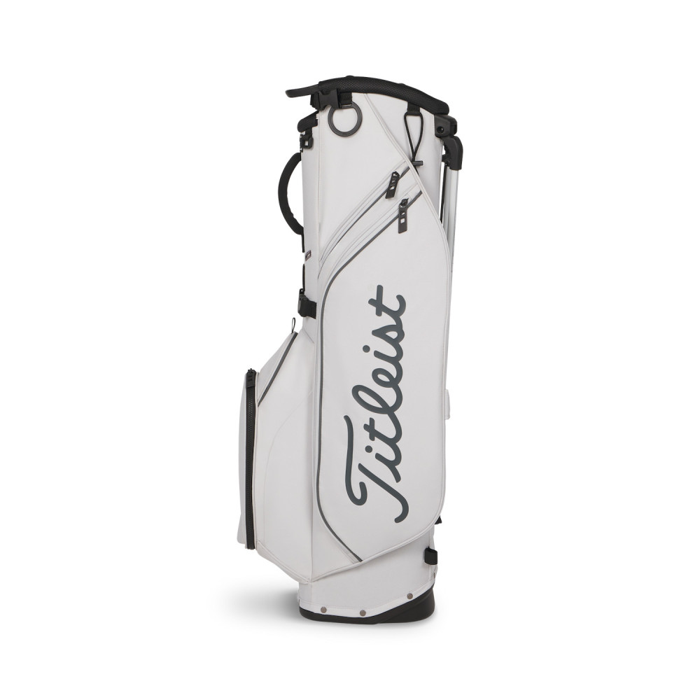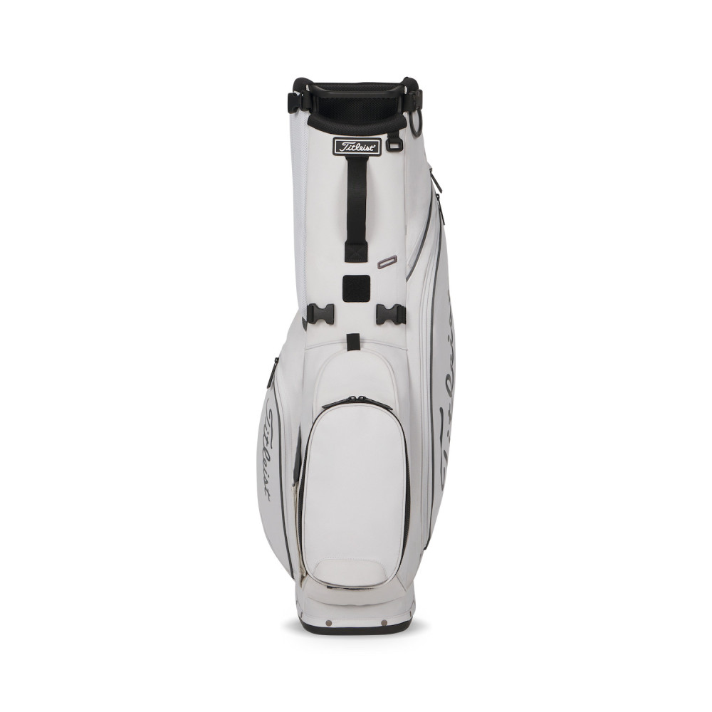 L'innovation majeure du Titleist Players S4 réside dans son système de trépied intégralement revu. Le nouveau mécanisme de déploiement des pieds assure une mise en place fiable sur tous les types de reliefs, offrant une base de 23 cm pour une stabilité maximale. Le haut du sac a également bénéficié d'un nouveau design avec une ouverture de 21 cm. Cette configuration permet une insertion et un retrait des clubs sans friction, évitant l'entremêlement des grips grâce à une structure interne segmentée.