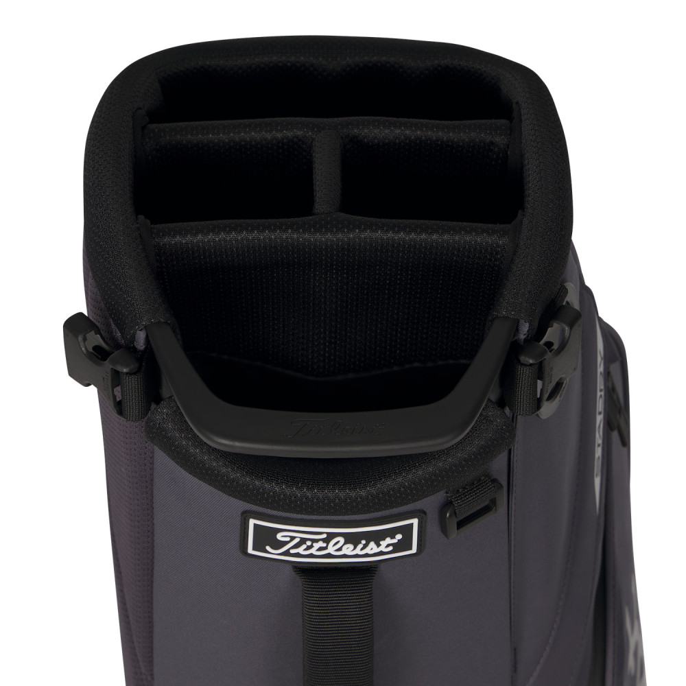 Ce sac est fabriqué avec des tissus en polyester plus résistants que les versions précédentes, garantissant une longévité accrue face aux frottements et à l'usure quotidienne. L'utilisation systématique de zips YKK de haute qualité assure une manipulation fluide et durable. Chaque détail, de la base renforcée aux coutures thermosoudées, témoigne de l'exigence de Titleist pour fournir un produit capable de supporter les rigueurs des saisons de golf successives.