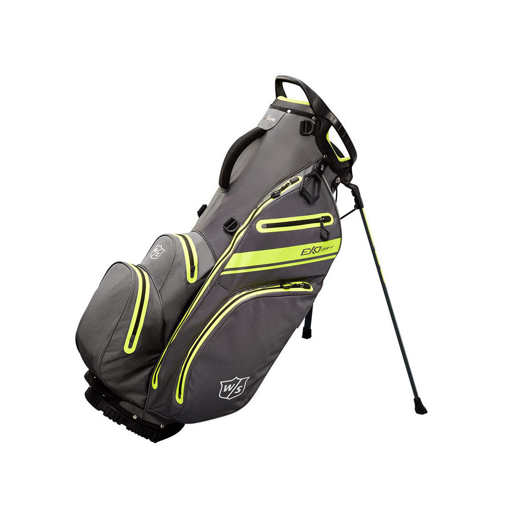 L'EXO Dry est un sac de golf haut de gamme et imperméable qui comprend 5 sections de club divisées, une base antidérapante, des sangles rembourrées en mousse 3D, une grande poche pour vêtements, une poche pour accessoires, une pochette pour bouteille d'eau et une grande poche pour balles pour organiser et protégez votre équipement tandis qu'un support entièrement intégré garde tout à portée de main.