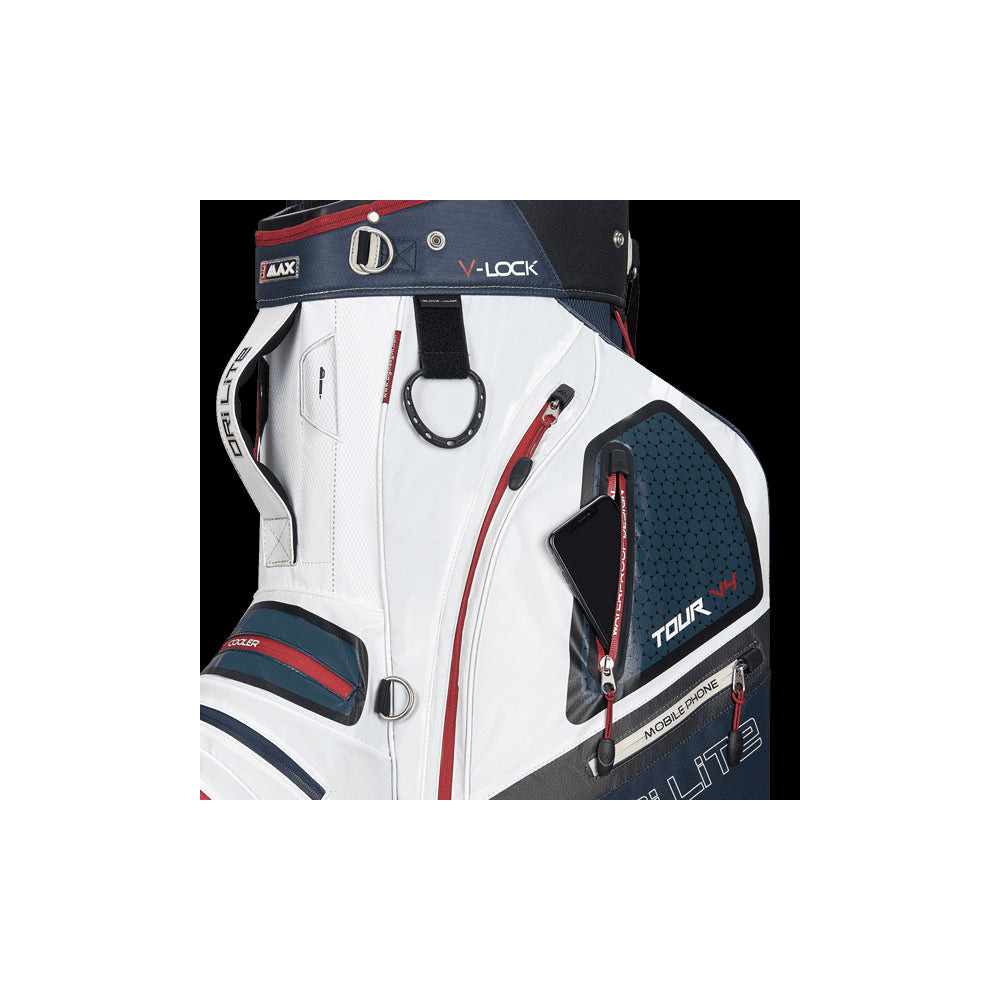 Le sac Dri Lite V-4 offre une vue d'ensemble parfaite des clubs. Alors qu'avec des compartiments conventionnelles les grands clubs cachent des clubs plus petits, le système V-Lock fonctionne comme suit :