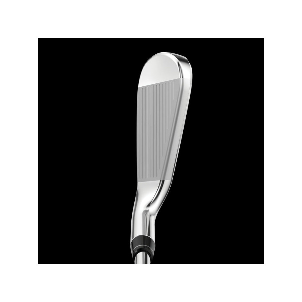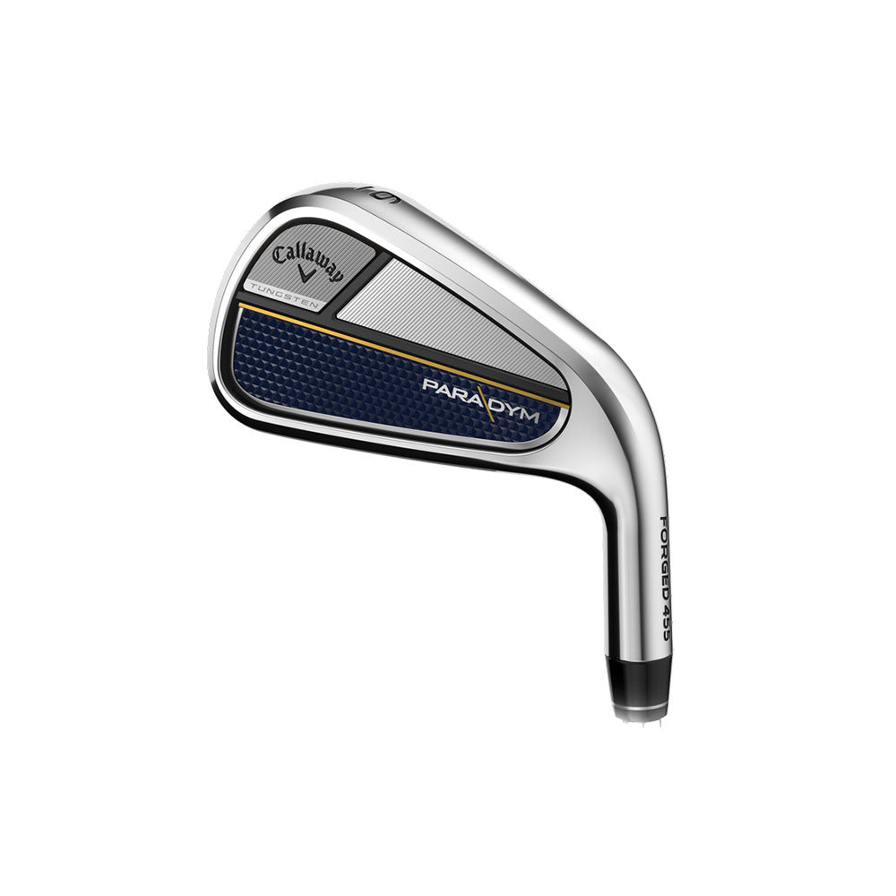Les fers Paradym de Callaway combinent une face forgée 455 conçue par l'IA et un nouveau cadre Speed Frame pour offrir une distance et une tolérance accrues, une forme raffinée et un forgeage de qualité. La technologie A.I. est utilisée pour optimiser chaque face pour plus de vitesse, un meilleur lancement et une meilleure régularité des effets. La construction Speed Frame permet une plus grande rigidité du corps et un meilleur soutien de la coupe de face forgée. Les microsphères d'uréthane brevetées offrent un toucher ultra-doux et un son de qualité supérieure. La double pondération en tungstène améliore les conditions de lancement et la vitesse sur les mauvais coups. Le fer Paradym a également une forme raffinée pour les joueurs avec un bord d'attaque pré-usé pour couper le gazon plus efficacement pour encore plus de tolérance.