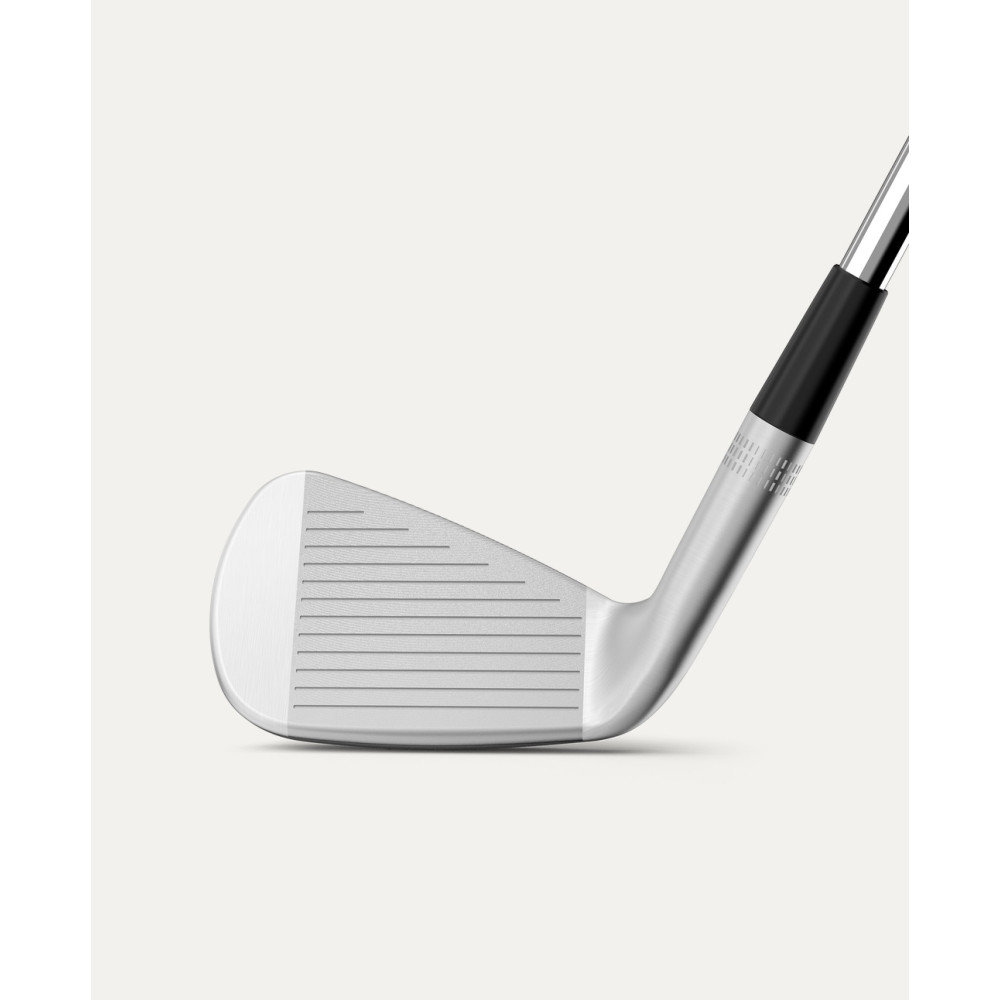 La face de chaque fer est soumise à un fraisage de précision (Precision Milled Face). Ce motif spécifique permet un contact prolongé entre la balle et la face du club lors de l'impact. Il en résulte un taux de spin plus constant et une puissance de freinage accrue sur le green. Cette maîtrise de la rotation est essentielle pour stopper la balle rapidement, même sur des surfaces fermes et rapides.