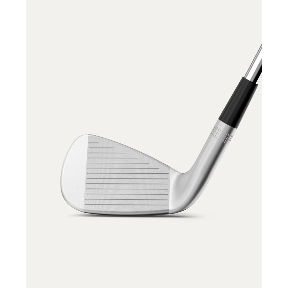Chaque fer de la série Staff Model XB bénéficie d'une face soumise à un fraisage de précision (Precision Milled Face). Ce motif de fraisage sophistiqué permet de prolonger le temps de contact entre la balle et la face du club. Il en résulte un taux de spin plus constant et une capacité d'arrêt (stopping power) accrue, essentielle pour immobiliser la balle rapidement sur les greens fermes.
