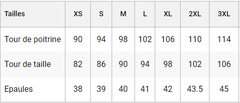 Ce modèle se porte très près du corps et a une coupe cintrée. Si vous avez une poitrine généreuse ou que vous souhaitez un porté moins près du corps, prenez une à deux tailles au-dessus.