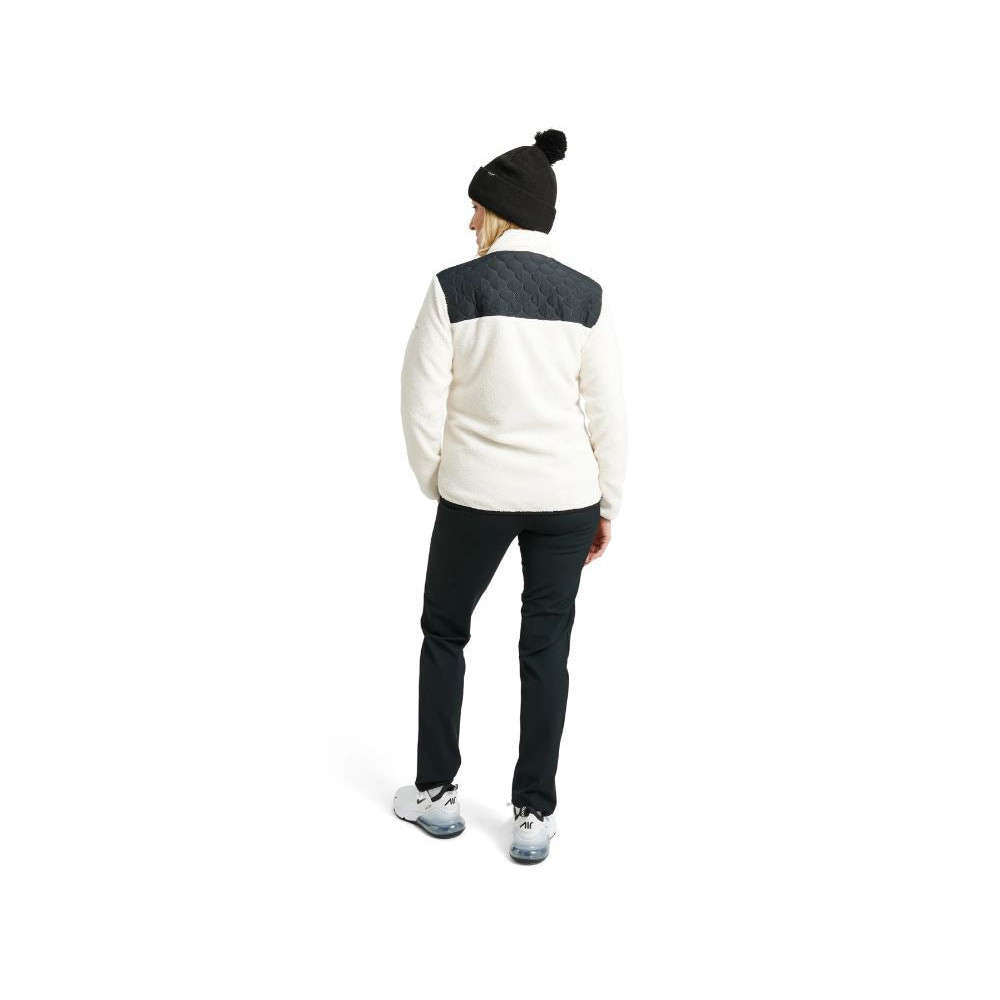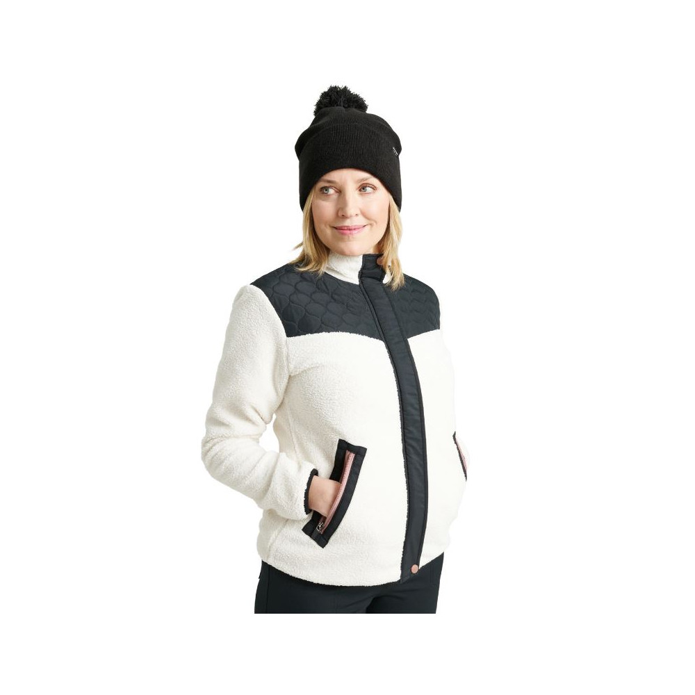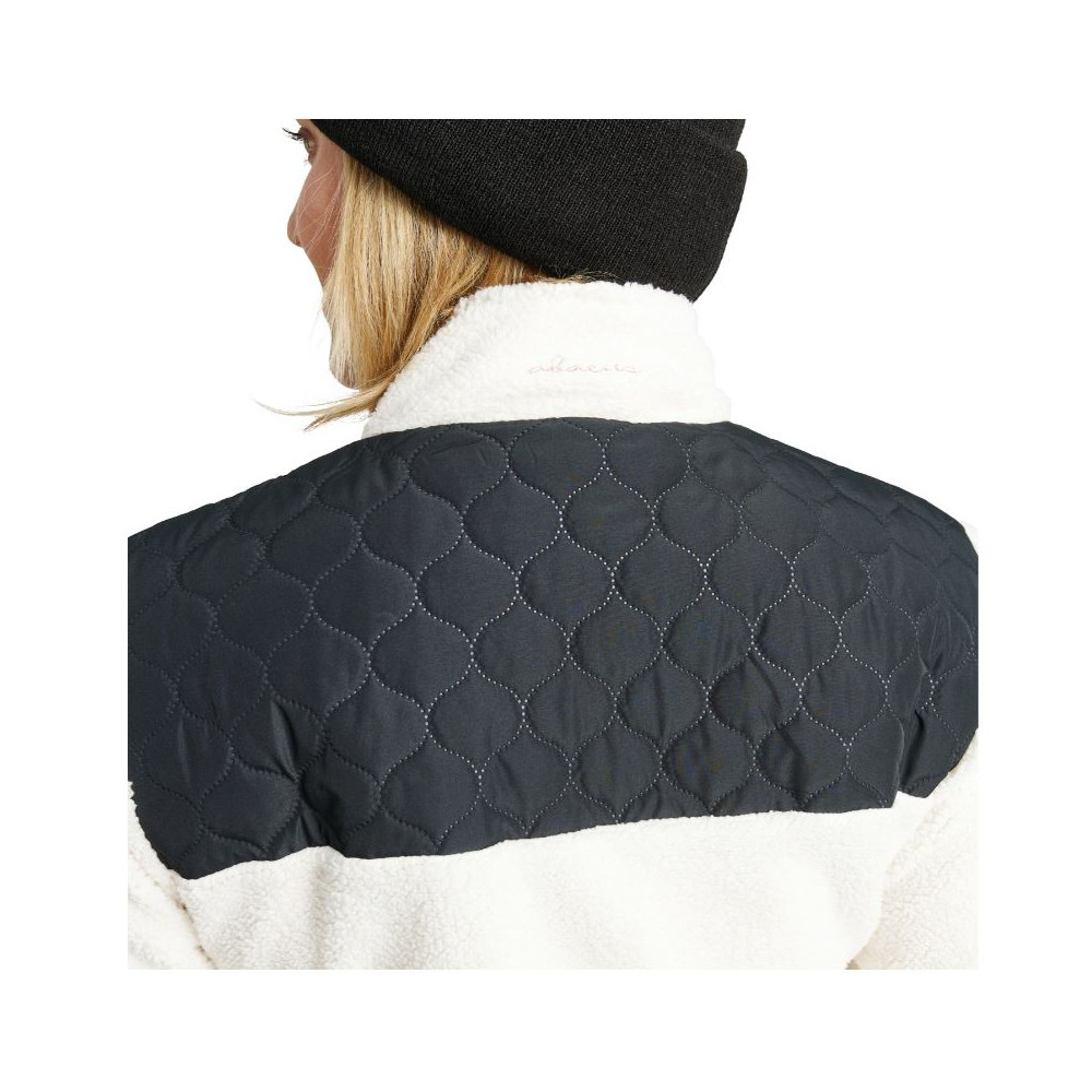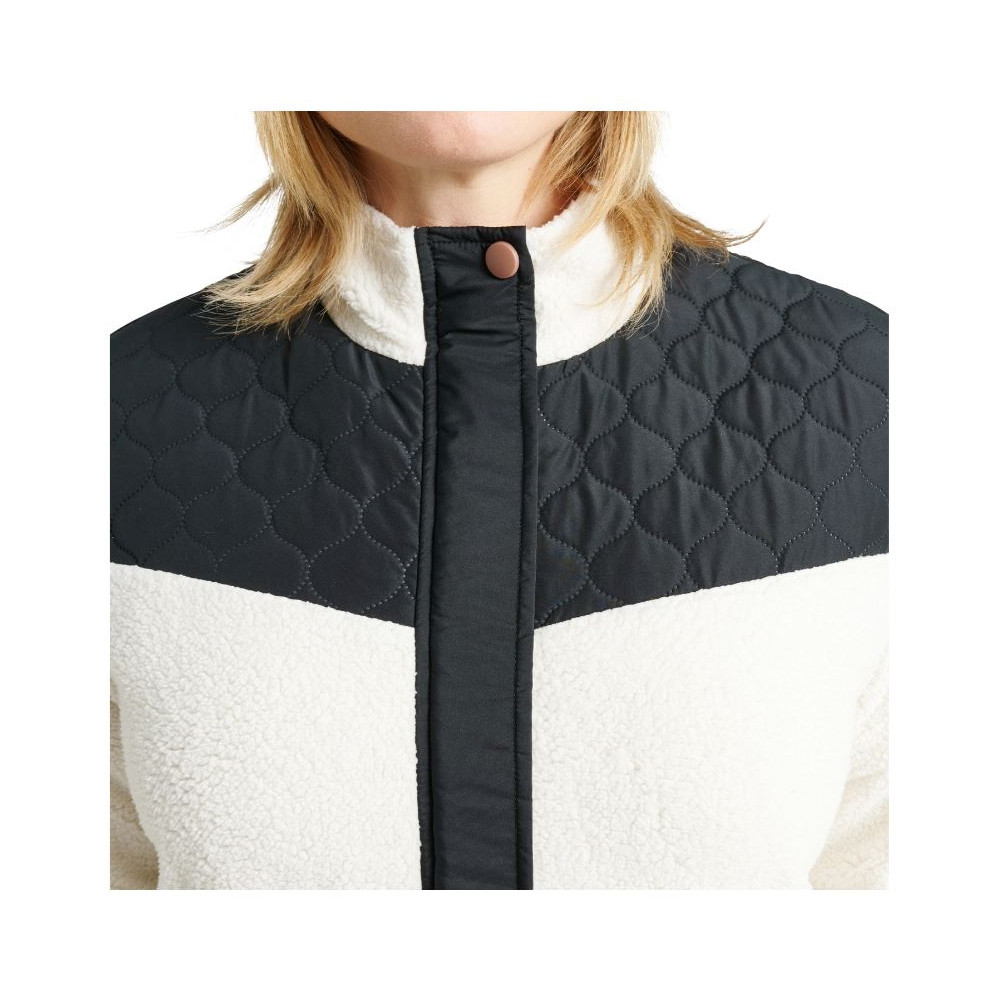 Cette veste combine des sections en polaire douce à l'avant, à l'arrière et sur le col, avec des parties matelassées rembourrées sur les épaules et le haut du dos. Ce mariage de textures assure chaleur et style tout en offrant une excellente respirabilité.