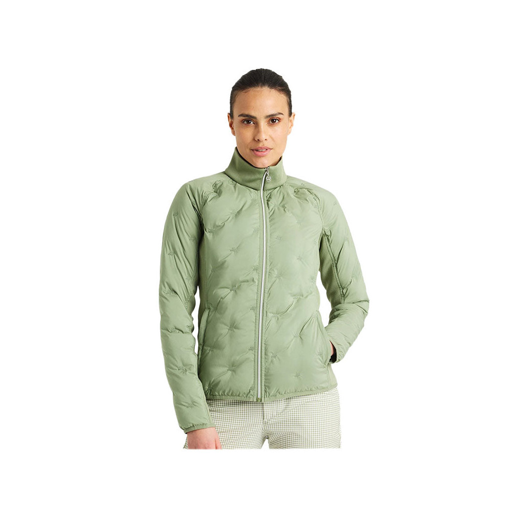 La veste Padded Windbreaker Röhnisch est spécialement pensée pour les golfeuses qui veulent rester protégées du vent et des petites pluies sans sacrifier le confort.