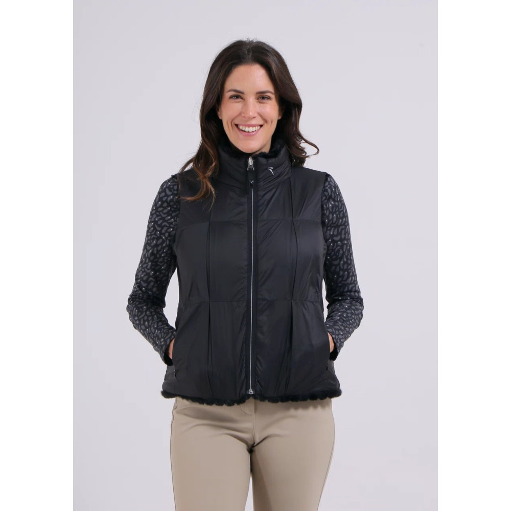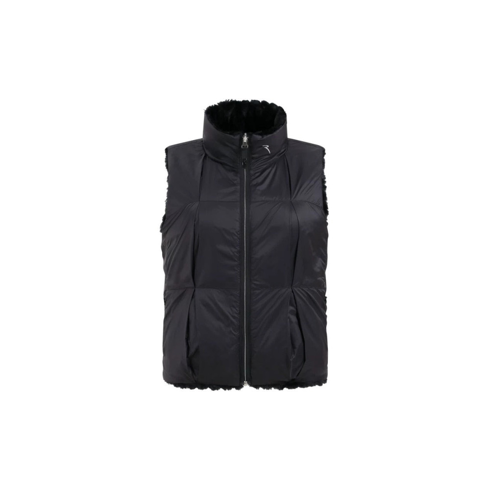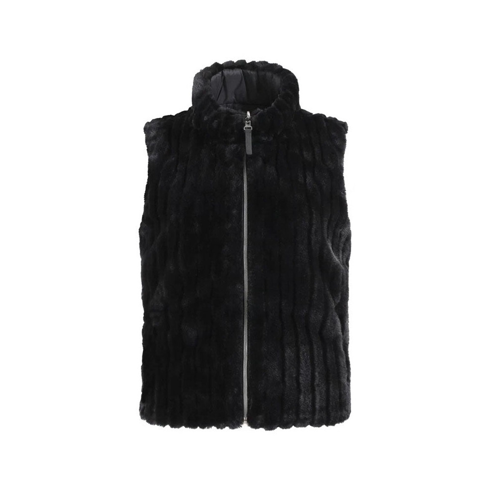 La veste sans manches Export de Chervo est un indispensable pour affronter les journées froides avec élégance. Réversible, elle offre deux styles en un : une face en fausse fourrure à texture côtelée pour un look cosy et raffiné, et une face en nylon technique coupe-vent au design matelassé pour un aspect plus sportif et contemporain.