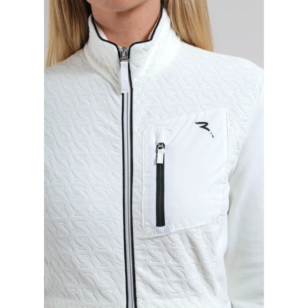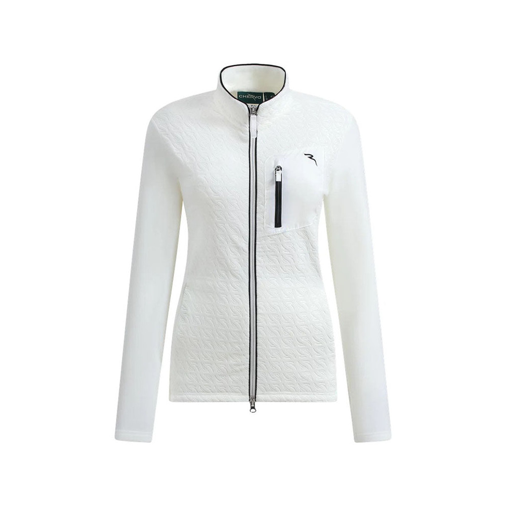 La veste Panna de Chervo est un sweat zippé intégralement en polaire stretch, conçu pour offrir chaleur et confort par temps froid. Son intérieur gratté procure une douceur agréable tandis que le motif monogramme en relief apporte une touche de style raffinée et sportive.