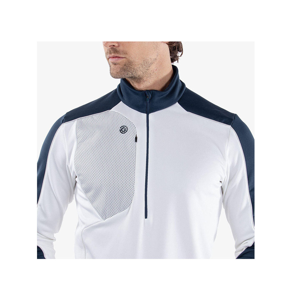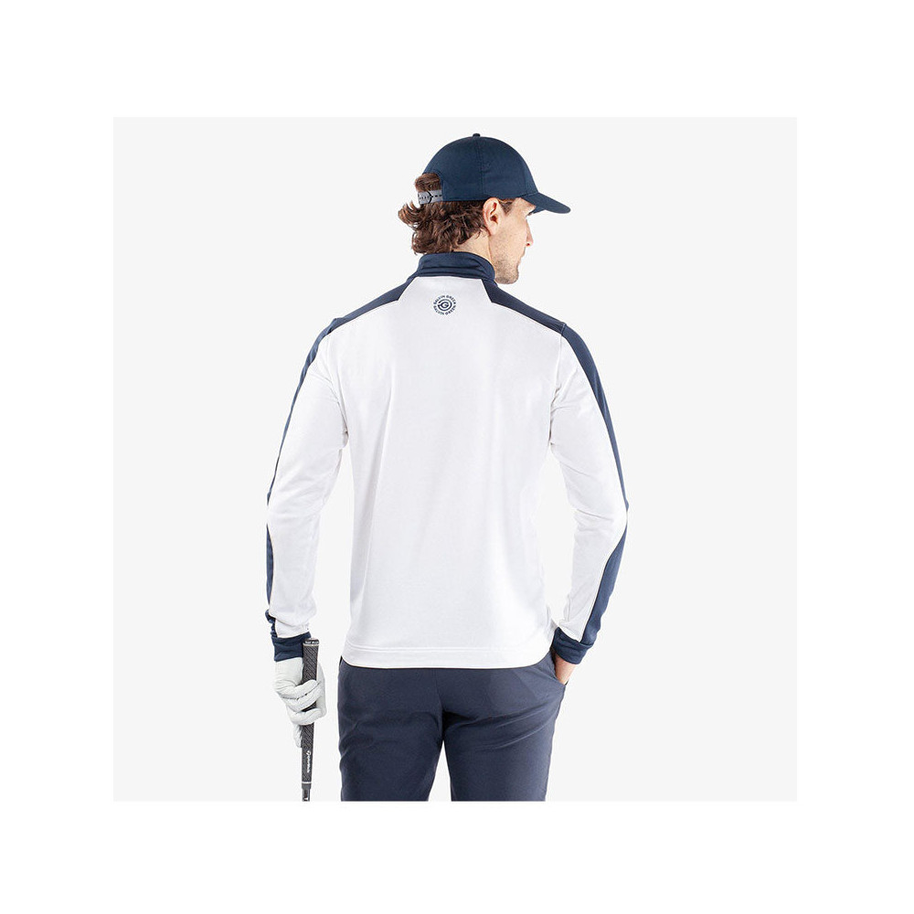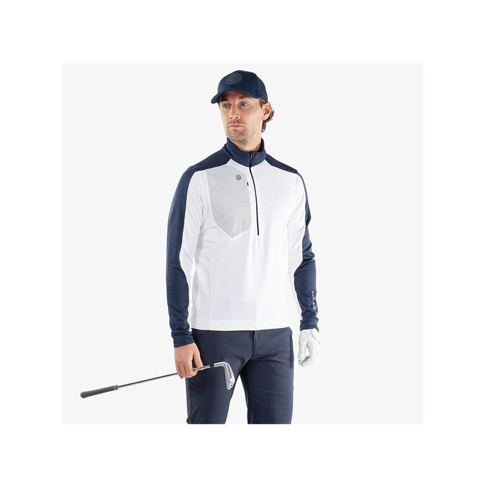 La veste Dave Homme de Galvin Green est une couche intermédiaire INSULA™ conçue pour offrir une isolation thermique exceptionnelle, idéale pour les conditions fraîches à froides. Son demi-zip avec passepoil contrasté et ses couleurs vives ou neutres en font une pièce élégante, parfaite pour les parcours de golf ou les sorties décontractées.