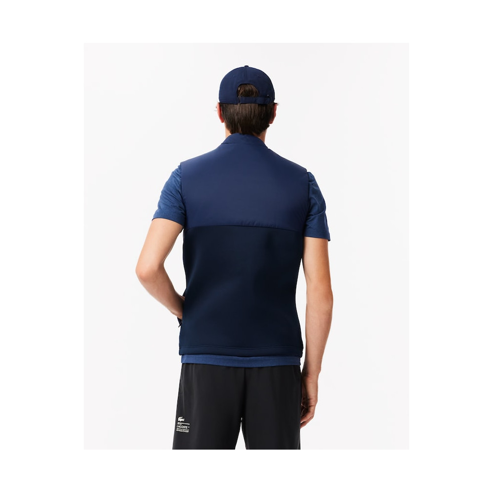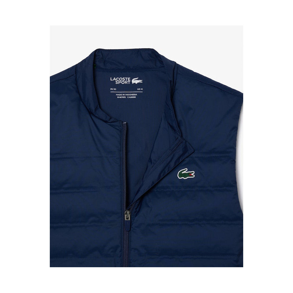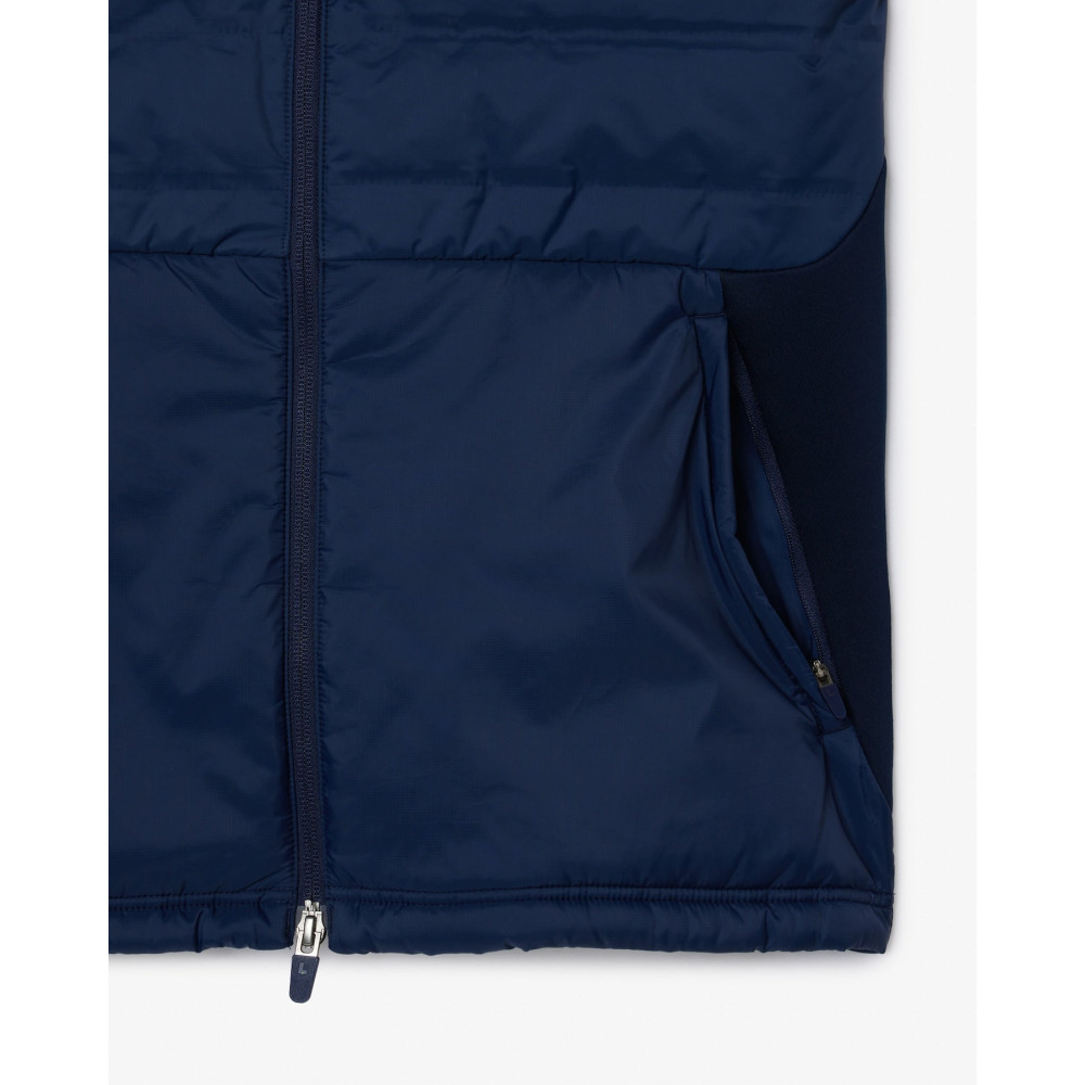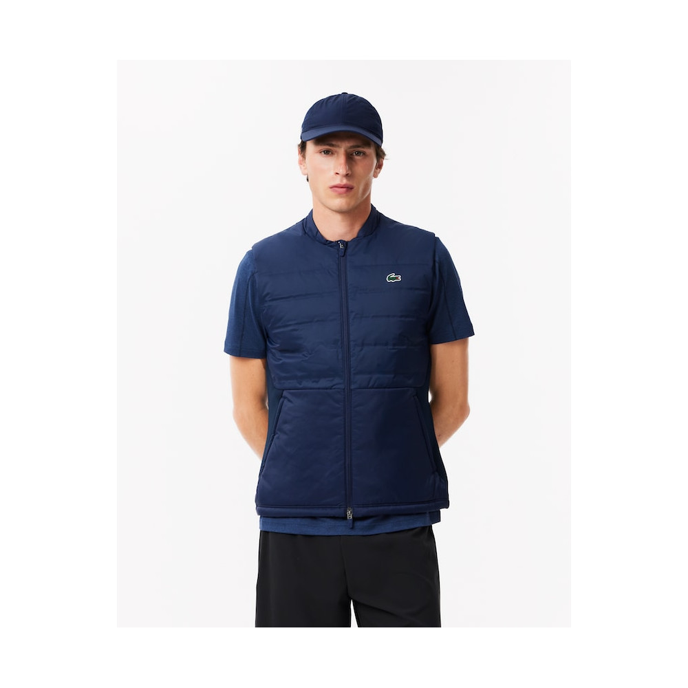 La veste sport matelassée sans manche Lacoste est spécialement conçue pour les sportifs, approuvée par des joueurs de golf et de tennis professionnels. Son design sans manches permet une liberté de mouvement maximale, parfaite pour les mouvements amples comme les swings ou les revers. Cette veste incarne l'expertise sportswear de Lacoste, développée depuis 1933.