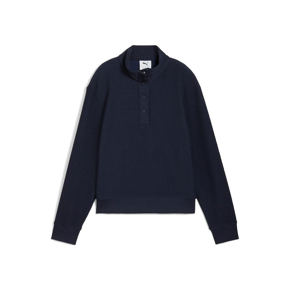 Le pull Boulder de Puma est une version revisitée de l’un des best-sellers de la marque, pensé pour offrir un confort exceptionnel et une esthétique intemporelle. Son motif texturé discret, son toucher ultra-doux et sa coupe moderne en font un incontournable, aussi bien sur le green qu’au quotidien.